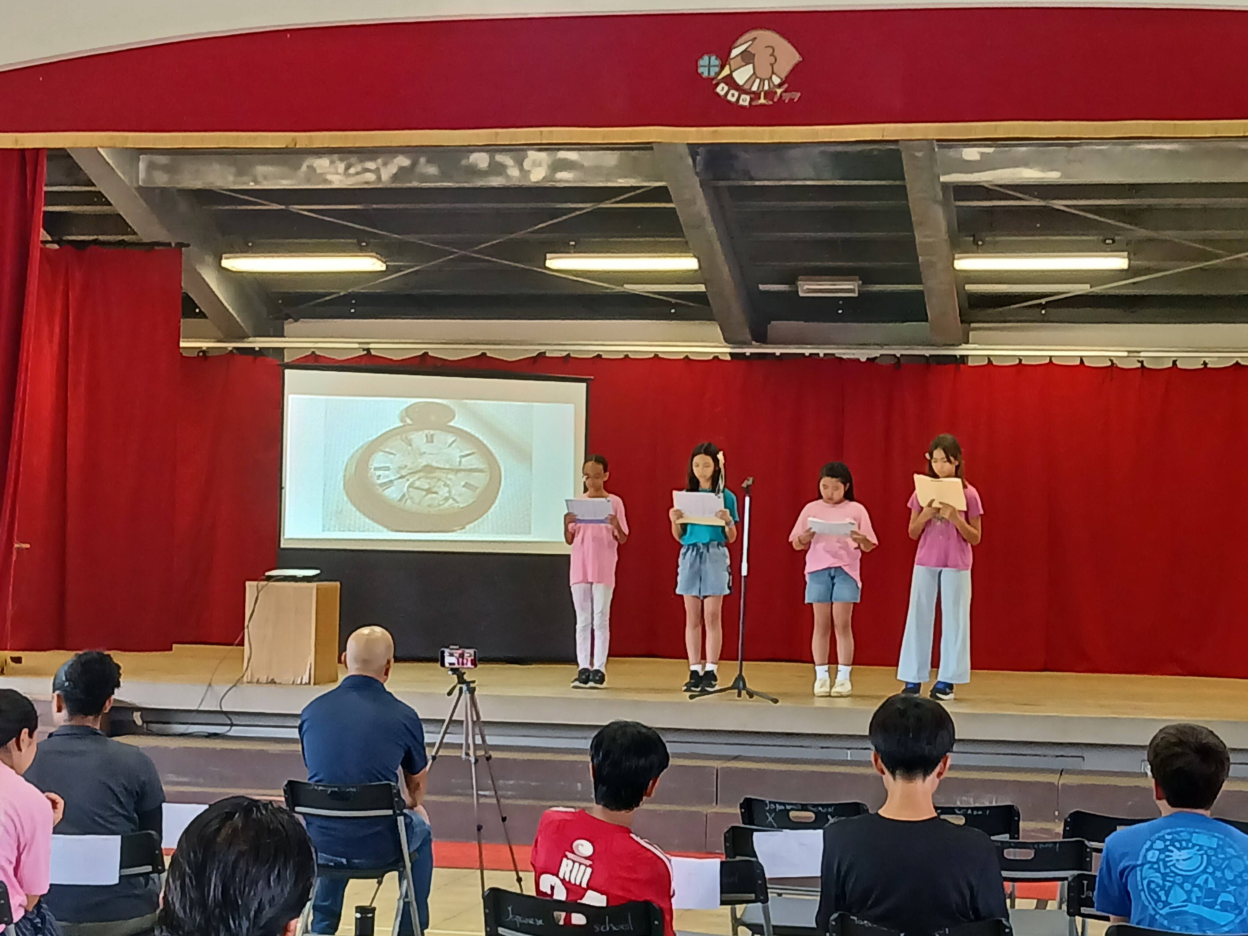 10月18日(土)、補習授業校では令和7年度の音読発表会を開催しました。 今年はプリクラスも加わり、プリクラスから中学部3年生まで、全10学年が日頃の学習成果を発表しました。