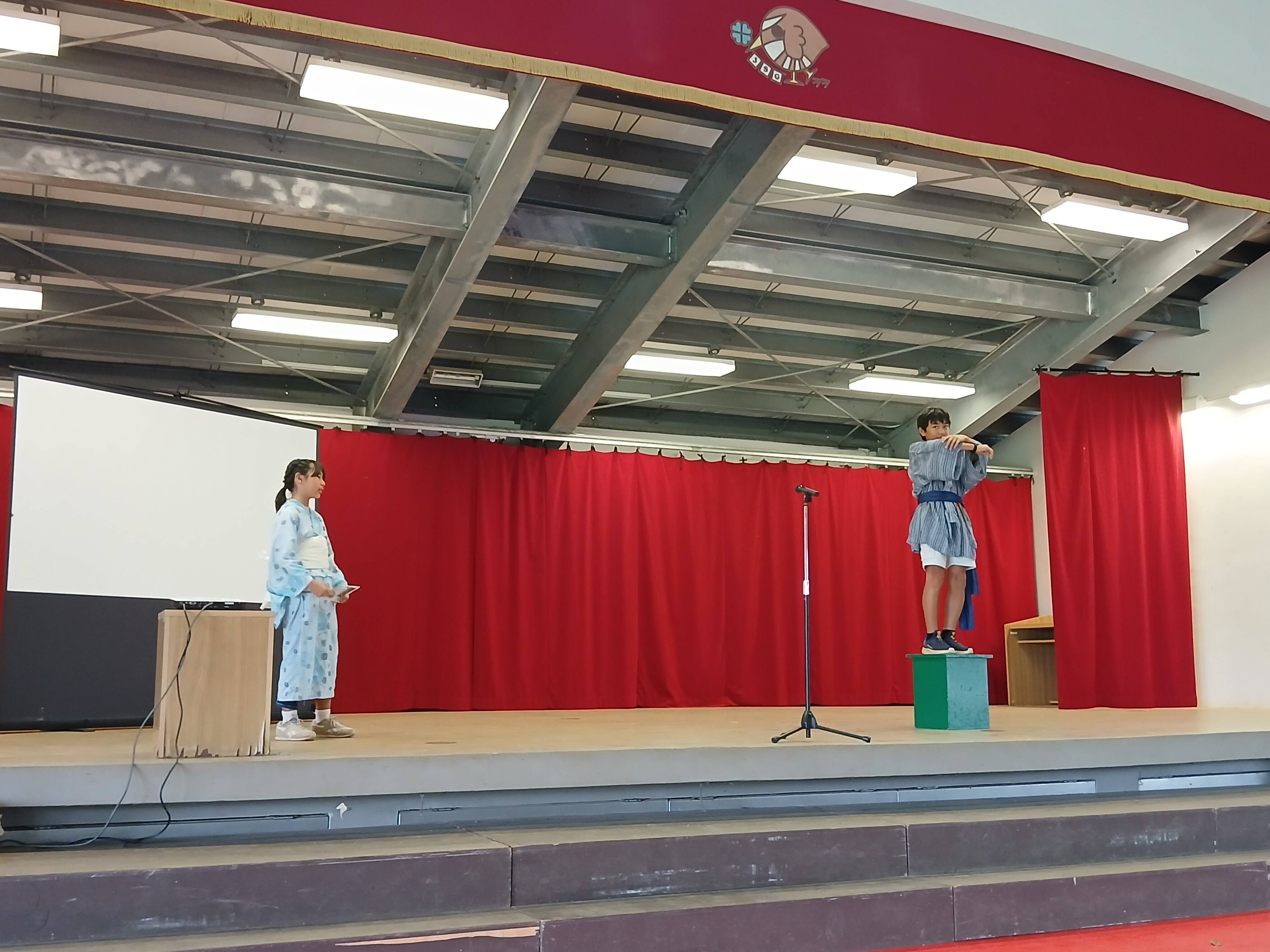 また、狂言や古典の発表もあり、古き美しい日本語の響きが体育館いっぱいに広がりました。 途中、突然の大雨にも見舞われましたが、生徒たちはまったく動じることなく、堂々と表現を楽しむ姿がとても印象的でした。