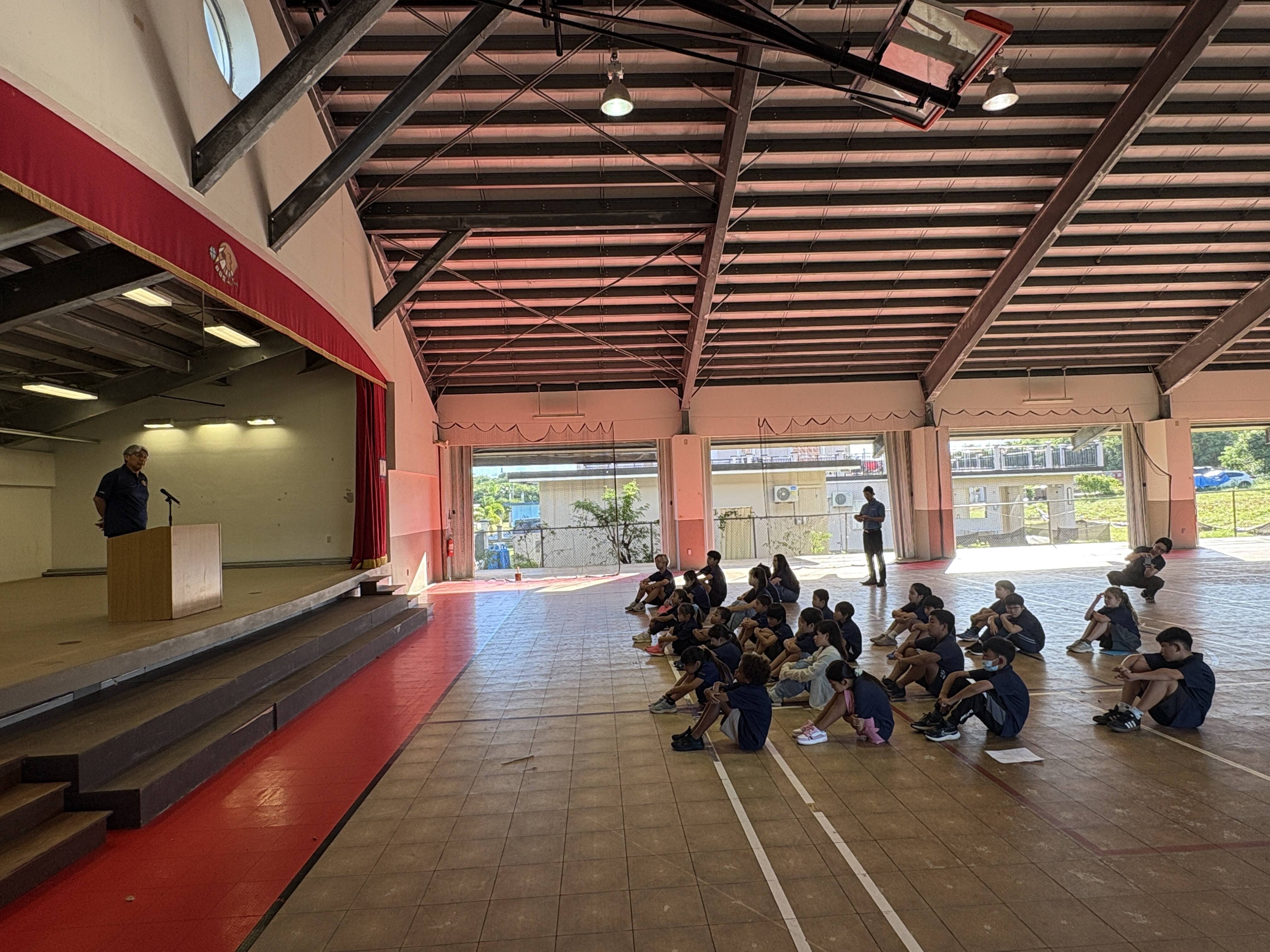日本とグアムの大きな違いの一つは、グアムでは銃による犯罪が身近に起こり得るという点です。 今回は、日本領事館より菅野様にお越しいただき、緊迫した雰囲気の中で、児童生徒は真剣に訓練に臨むことができました。ご指導の中では、次のようなお話がありました。