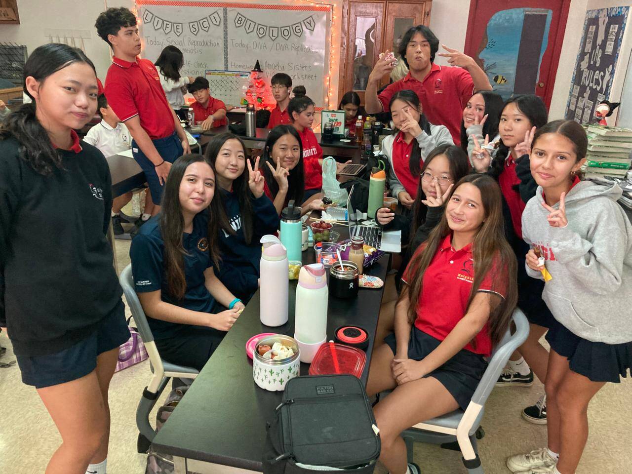 10月22日(水)、中学部の5人がキャリア教育の一環として、グアムでもっとも有名な学校のひとつ「セントジョンズスクール」に1日体験入学してきました!JIAGの中学部には、日本の高校を受験する生徒もいれば、グアムのハイスクールに進学する生徒もいます。そのため、今回の体験はそれぞれが希望する進路の雰囲気を感じ取る、とても貴重なチャンスとなりました。最初は少し緊張した様子も見られましたが、ペアになった現地の生徒と一緒に授業を受けたり、知っている友達や後輩と話したり、ランチタイムに笑い合ったりするうちに、すぐに打ち解けていました。当日は、80分授業(もちろんすべて英語!)や、スナックタイム(お菓子やアイスを買える時間!)、チャペルの時間や日本語の授業など、現地校ならではの貴重で楽しい体験が盛りだくさん。中には、「卒業したらここに通いたい!」と話す生徒もいました。学びと笑顔がいっぱいの、充実した1日となりました!受け入れてくださった先生方、そして温かく迎えてくれたセントジョンズの生徒のみなさん、本当にありがとうございました!
